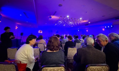 会場の大宴会場ではロビーでのウエルカムドリンクほかDJで早くも大盛り上がり。