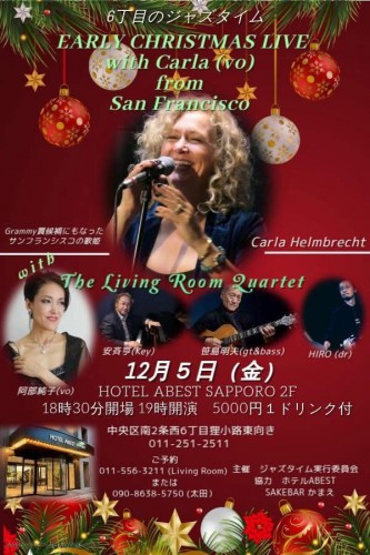 先日はお誘いがあり、JAZZライブに足を運びました。仕事でもご一緒している阿部純子さんのヴォーカル、サンフランシスコからのCarla Helmbrechtさん、笹島明夫(Akio Sasajima - YouTube)さんと共に。