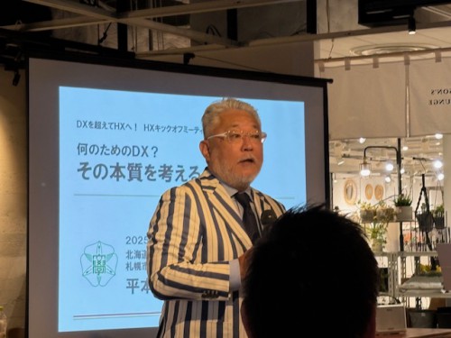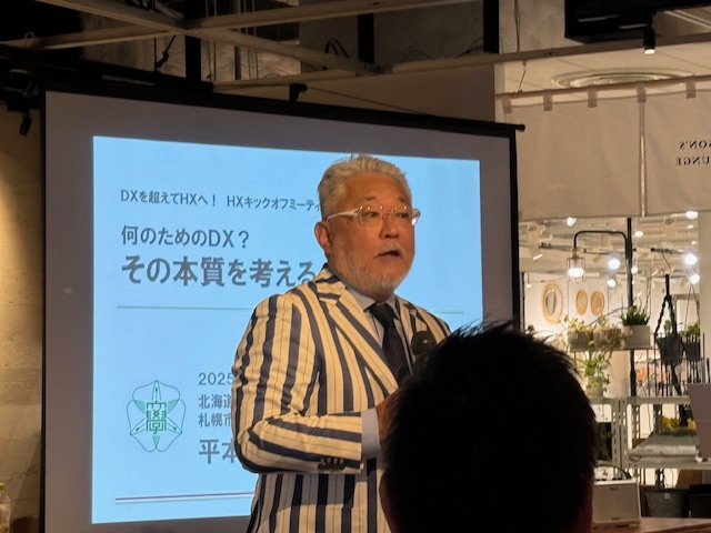 北海道大学大学院 平本健太教授(札幌市DX部会長) の基調講演では、「中小企業DXの進化とHXの可能性」について、事例を含めて分かり易いプレゼンでした。
