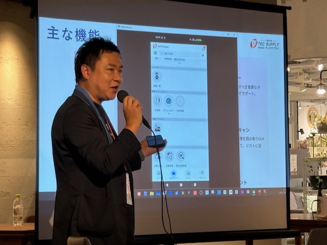 続いてはテックサプライ IT顧問 時津宝生さんから、オリジナルアプリ群(Newgate/Abilit/Opera/Enrich)のご紹介等のプレゼンでした。