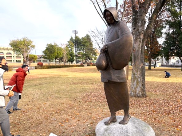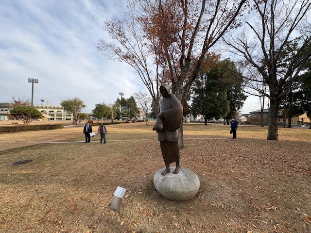 この像の背景は木々と芝生が拡がっていましたが、今回この場所に平屋の防災資料館他のコンクリート建物が建設予定のようです。私たち財団関係者としては、機械等の騒音、景観、工事中の作業現場としての像への影響等について、県のご担当の方々とも今年3月、先日と、真摯に意見交換をして参りました。