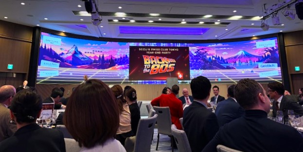 スイス大使館・スイス商工会議所主催の早めの『Year end party』、スイスの企業から私もご招待を受けて出席、300人を越えるゲストが一堂に会して『Back to the 80s!』をテーマに大いに盛り上がりました。折しも東京新宿は先日の銀座同様、眩しく輝くビルの灯りとイルミネーション、こちらもこの電気は皆東北はじめ地方から供給されているのですから、手放しでは喜んではいられませんが・・・。