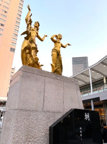 駅前の金色の野外彫刻、栃木県益子町にあるワグナー・ナンドール・アートギャラリーの創設者のワグナー・ナンドールは、「どうして日本の彫刻は女性がみな裸体像なのか」と言っていましたが、ここもそんな感じでしたね。