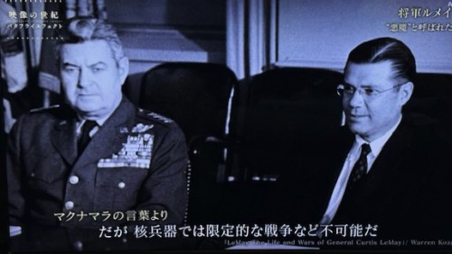 アメリカ空軍を世界最強へ押し上げたカーティス・ルメイは、「皆殺しのルメイ」「鉄の尻」「悪魔」、数々の異名を戴きながらしぶとく永年君臨した軍人です。太平洋戦争では日本の都市への無差別爆撃で26万の命を奪い、戦後、朝鮮戦争やキューバ危機でも彼は核兵器の使用を強硬に主張しました。徹底的な破壊で、敵の戦意を奪い、一気に決着を目指すルメイの思想は、今もアメリカ軍の軍事作戦の根幹です。この番組では「力による平和」を掲げた将軍カーティス・ルメイの生涯を様々な歴史と絡めて紹介していました。