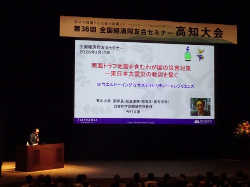 二日目の冒頭は東北大学今村文彦副学長のご講演,、アカデミックなお立場からの日本における地震災害のプレゼンテーションでした。