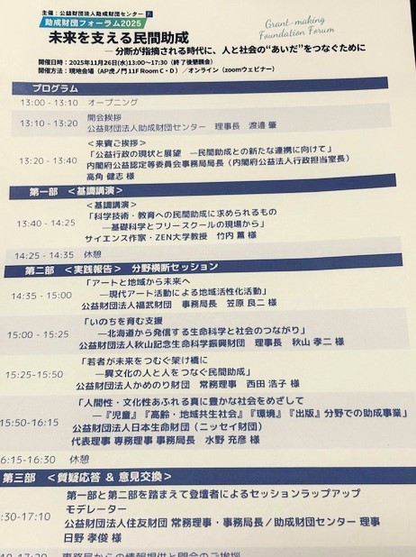 先日は助成財団フォーラムで登壇でした。思い起こせばこのフォーラムでは2011年に初めて登壇、その後も数回パネリストとして機会を与えて頂き、今回で4回目でしょうか。