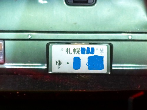 札幌市内で前を走る軽自動車のナンバープレート。