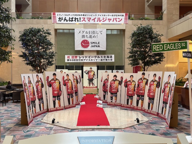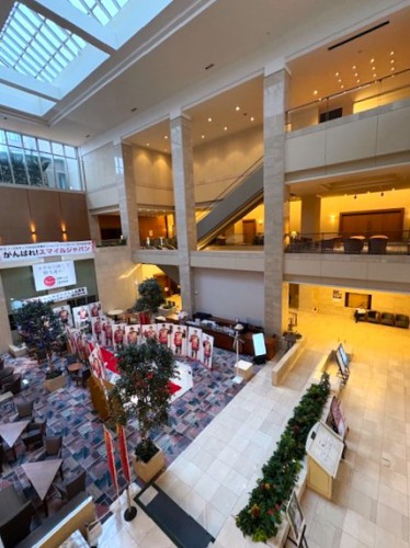 会場のホテルロビーには地元アイスホッケーチームの展示も。懐かしい雰囲気の広い吹き抜けのロビーとショップ・レストランでしたが、近々閉店するお店もポツリポツリ出始めているようで、なかなか厳しい現地の事情と理解しました。
