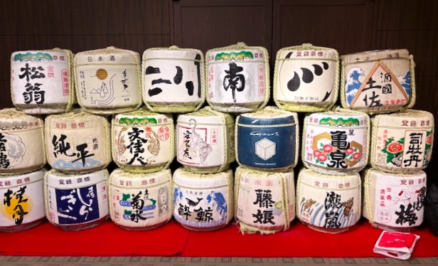 午後イチからのセミナー本番、開場入口には高知の地酒の菰樽も多種類陳列されての歓迎です。