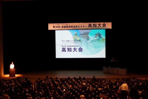 丸山さんのお話は、アダムスミスからアインシュタインの歴史観と哲学の変遷、高知弁の「ぼっちり」の精神の重要性等について、幸福、欲望、狭間をキーワードとした基本的理念、及び理想と現実を踏まえた企業活動の価値を語られました。
